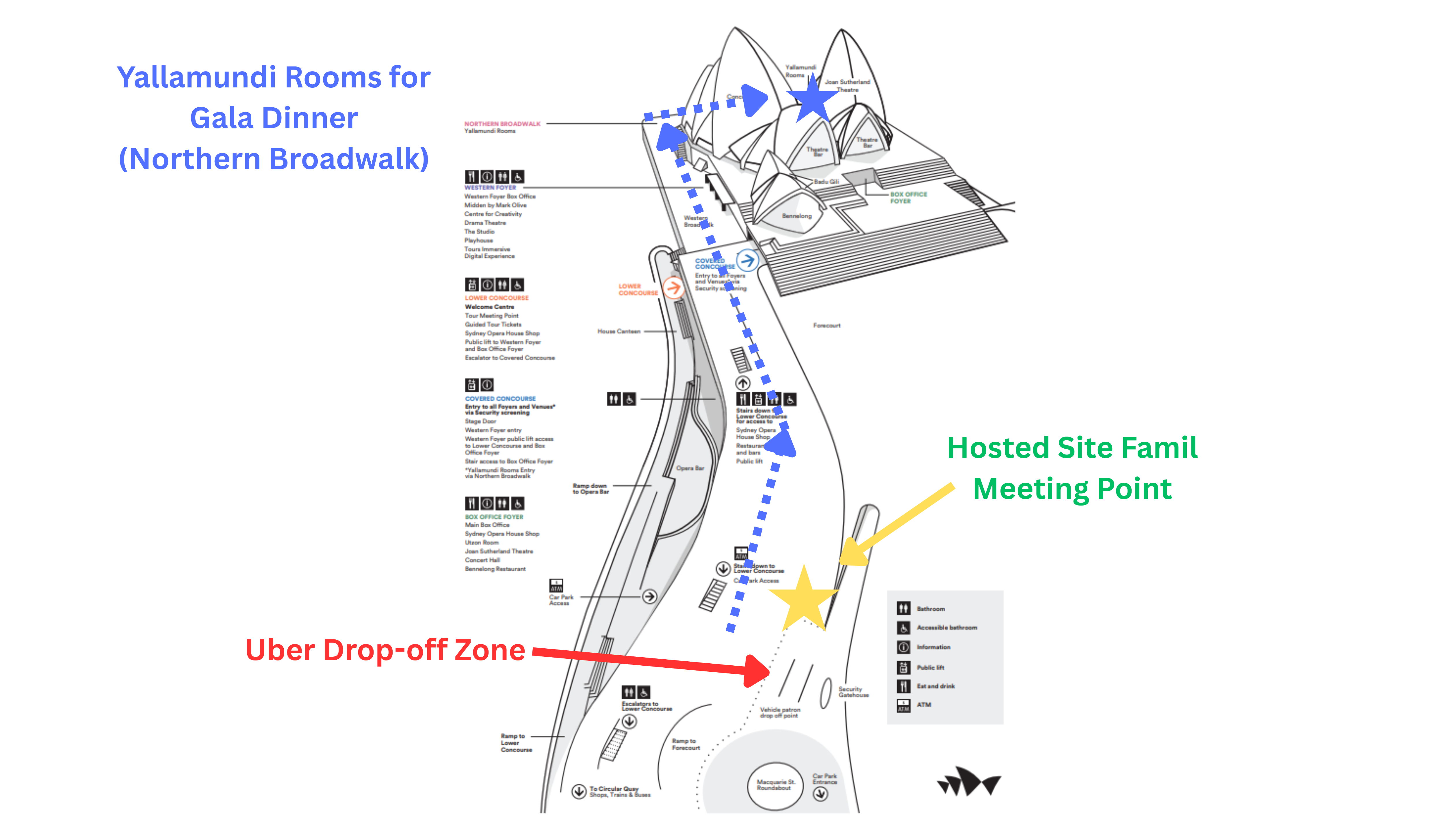 A venue map is below, highlighting the Yallamundi Rooms, as well as the meeting point for NSW sellers who wish to join the buyer backstage experience of Sydney Opera House, prior to dinner.